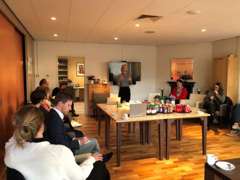 Allereerst stond het bekijken van de Comfortwoning op het programma. De Comfortwoning is een kopie van een cliëntenkamer, ingericht met allerlei technische zorgmiddelen die het langer thuis wonen kunnen stimuleren. Hier werd gesproken met een wijkverpleegkundige van Lelie zorggroep en een collega van Pameijer, beide enthousiast over het project: “We kunnen nu aan veel meer cliënten zorg bieden!” Vervolgens deelde Aad de Kool de visie op het project en tot slot werd er in een presentatie ingegaan op de totstandkoming van het project en de rol van Team van de Wijk.